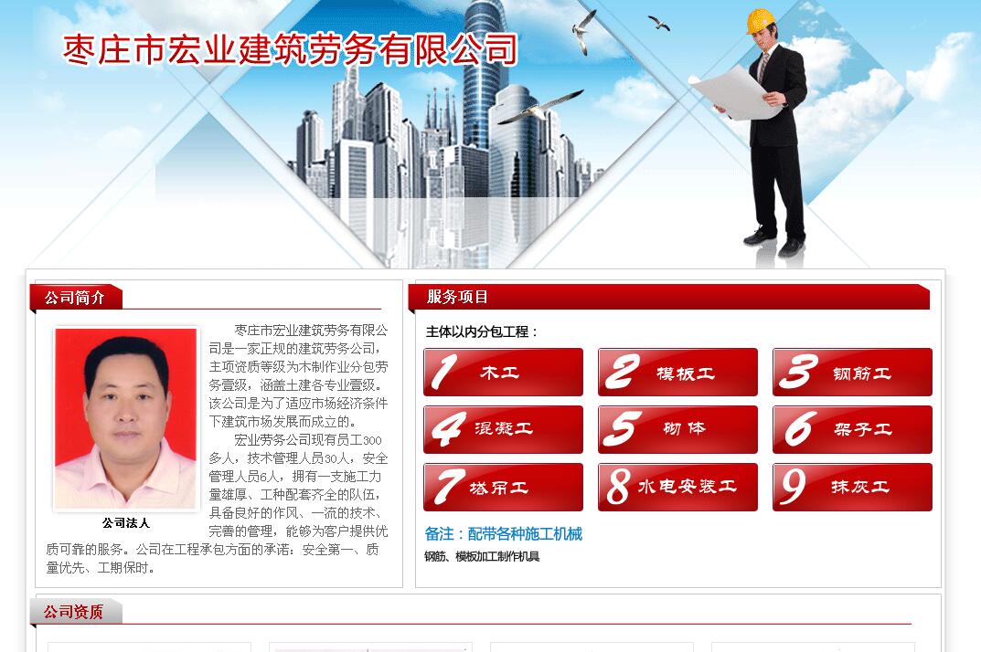 棗莊市宏業(yè)建筑勞務(wù)有限公司是一家正規(guī)的建筑勞務(wù)公司,主項資質(zhì)等級為木制作業(yè)分包勞務(wù)壹級,涵蓋土建各專業(yè)壹級。 該公司是為了適應(yīng)市場經(jīng)濟(jì)條件下建筑市場發(fā)展而成立的。 宏業(yè)勞務(wù)公司現(xiàn)有員工300多人,技術(shù)管理人員30人,安全管理人員6人,擁有一支施工力量雄厚、工種配套齊全的隊伍,具備良好的作風(fēng)、一流的技術(shù)、完善的管理,能夠為客戶提供優(yōu)質(zhì)可靠的服務(wù)。公司在工程承包方面的承諾:安全第一、質(zhì)量優(yōu)先、工期保時。 |